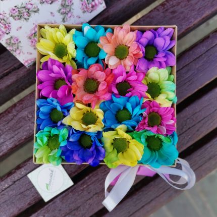 Коробочка из радужных хризантем