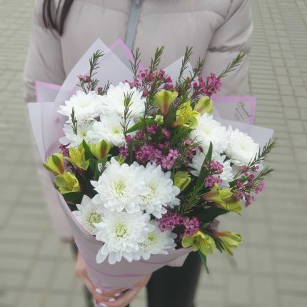 Букет из кремовых и белых хризантем