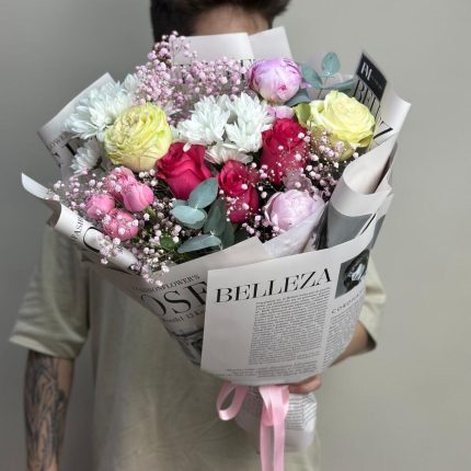 “Сладкое сердце ” – цветочная композиция с сладостями в коробке “Сердце”