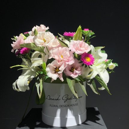 С чистого листа – Композиция с лилиями, пионовидными розами и пионами