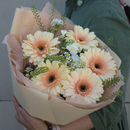 Букет Лучшее Признание S из танацетума и кустовой пионовидной розы сильвиа пинк