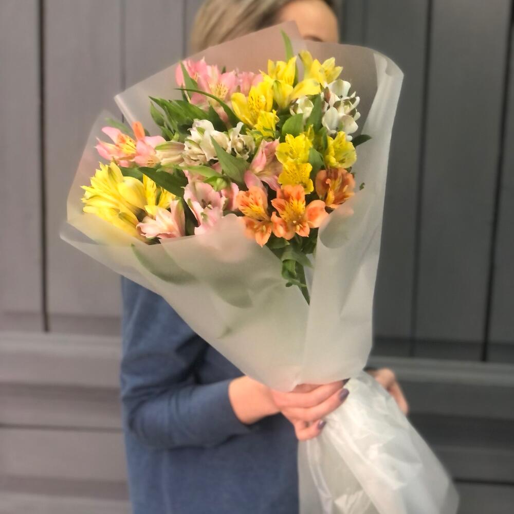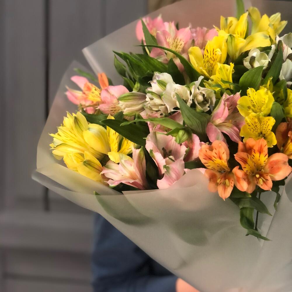 Альстромерия – 11 шт.Упаковка дизайнерская – 2 шт.Лента атласная – 1 шт.