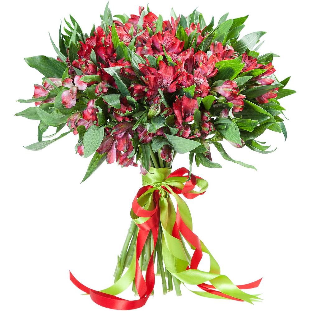 Атласная лента – 1 шт.Альстромерия красная – 25 шт.