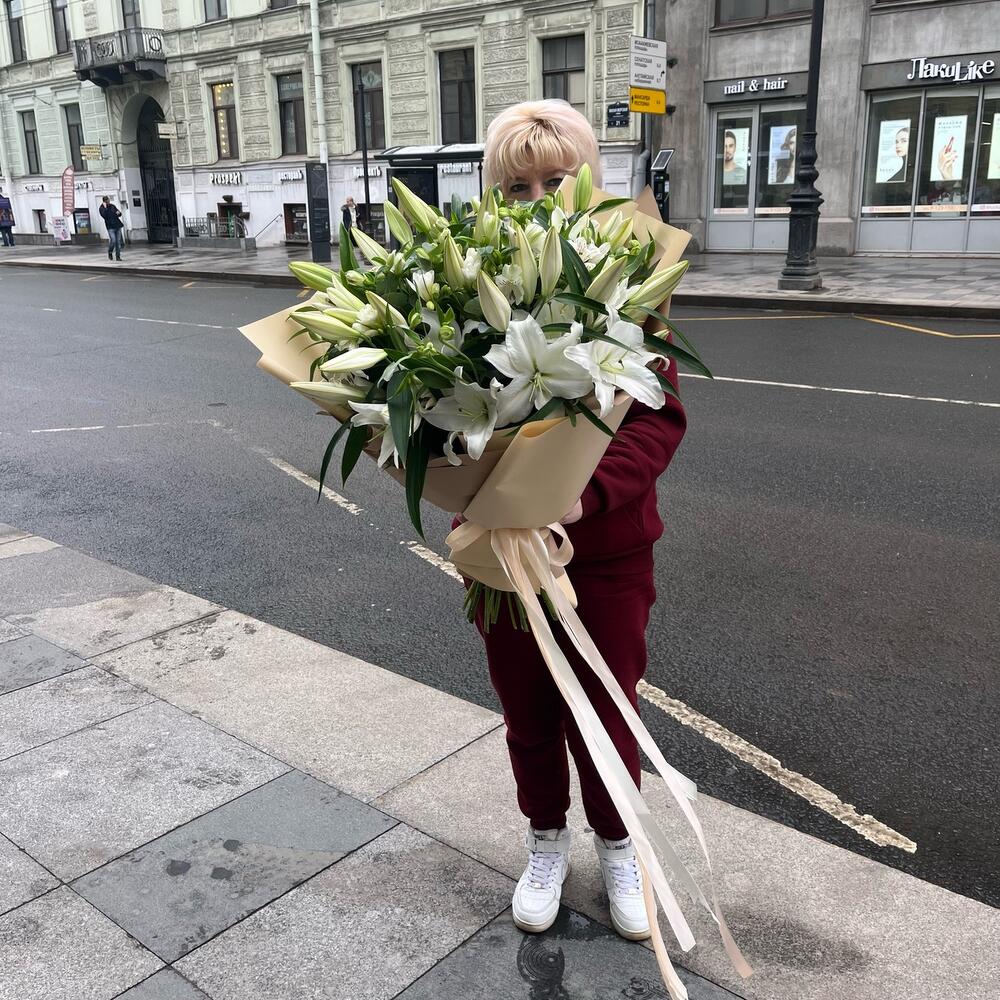ЮЛИЯ огромный премиальный авторский букет из лилий, фрезий и альстромерии