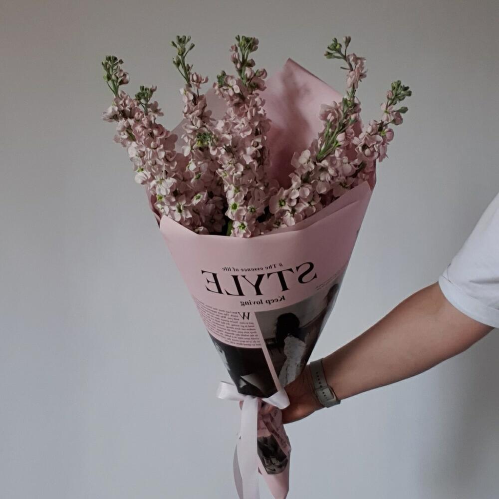 Упаковка – 2 шт.Лента атласная – 1 шт.Маттиола розовая – 9 шт.