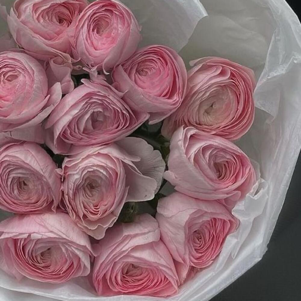Ранункулюс розовый – 13 шт.Упаковка дизайнерская – 1 шт.Лента атласная – 2 шт.Открыточка с вашими пожеланиями – 1 шт.хорошее настроение – 100 шт.инструкция по уходу за цветами – 1 шт.коробка переноска – 1 шт.Кризал – 1 шт.