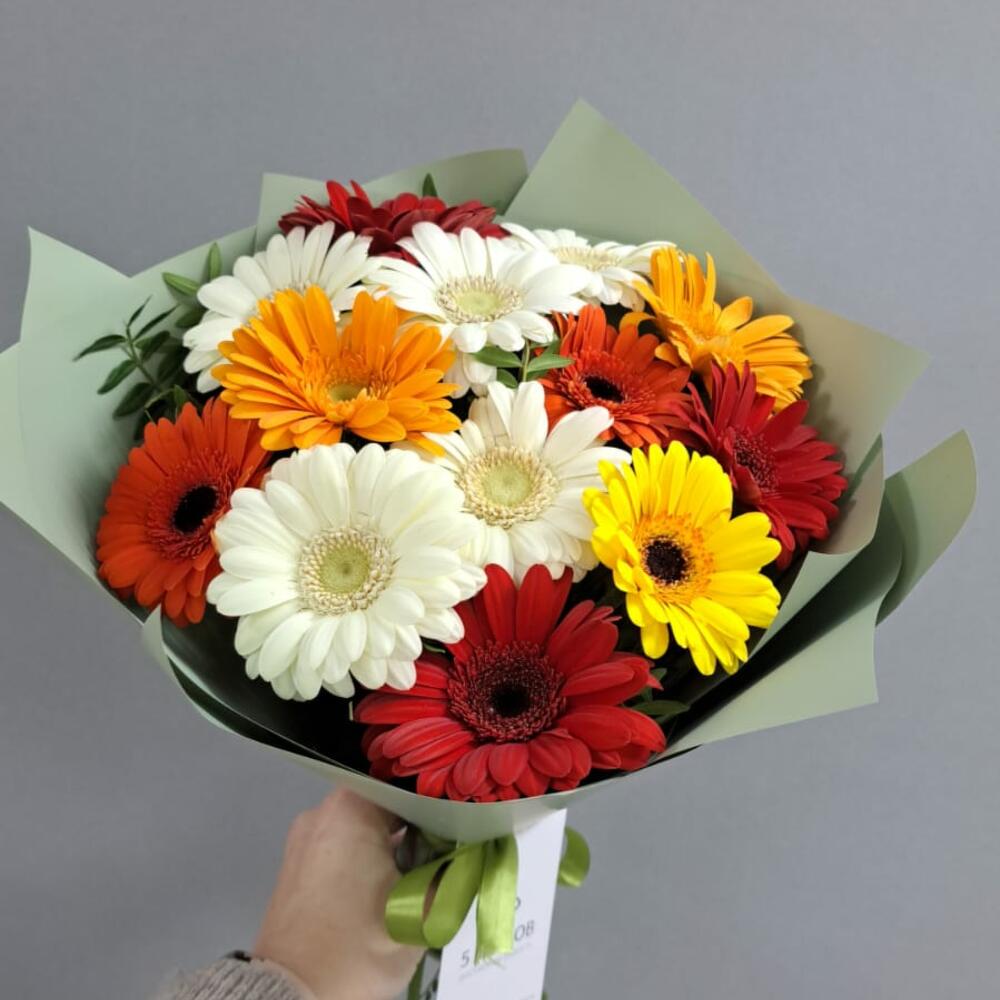 герберы разноцветные – 13 шт.
