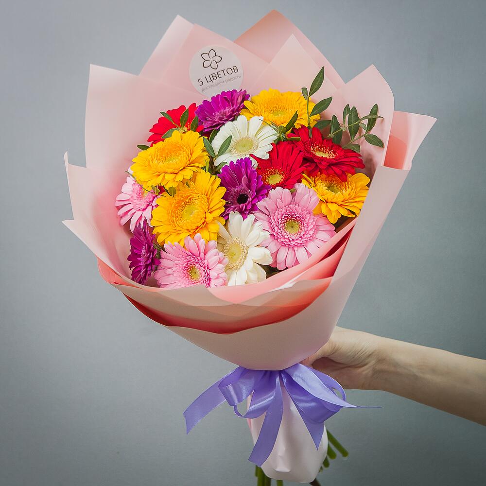 Букет из 15 гербер микс