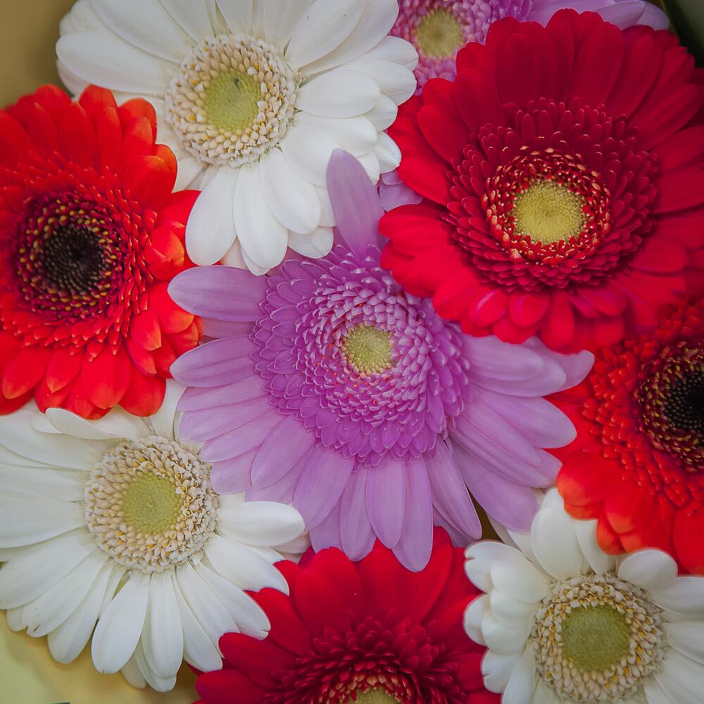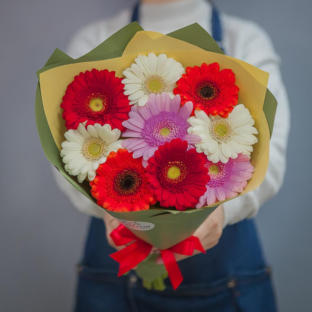 герберы разноцветные – 9 шт.