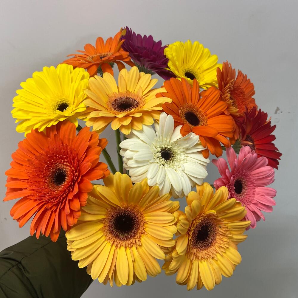 гербера микс – 13 шт.флористическая проволока – 13 шт.Атласная лента – 1 шт.