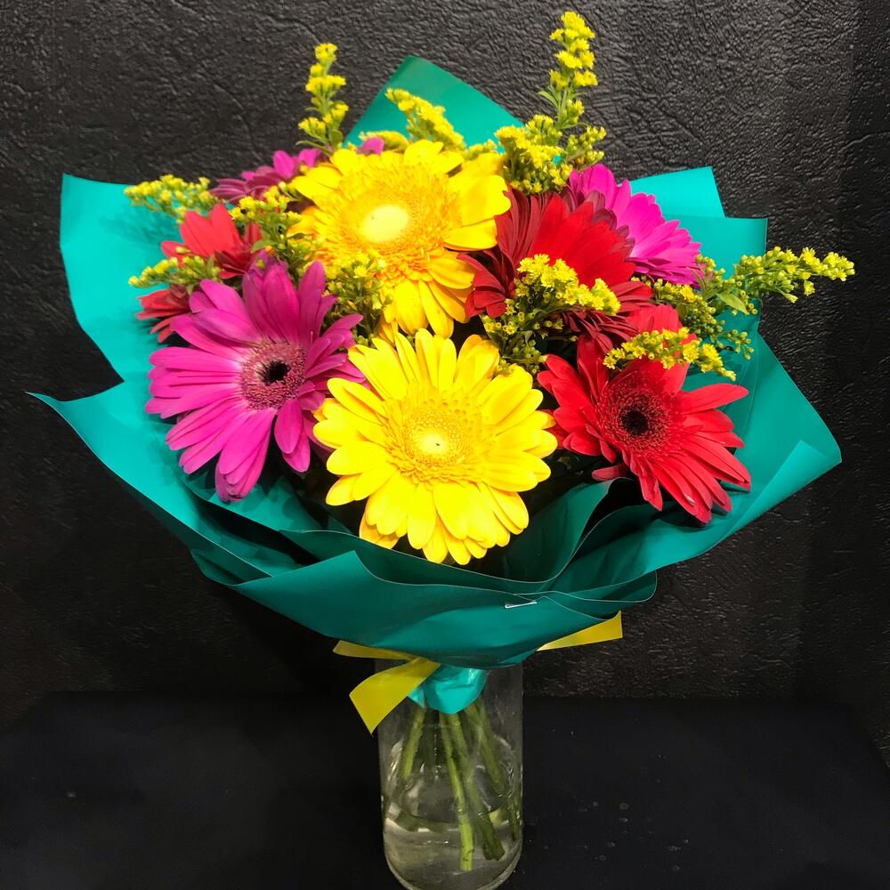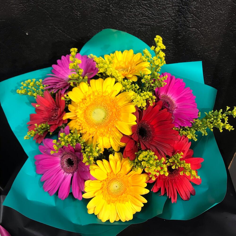Солидаго – 2 шт.Гербера – 9 шт.Упаковка – 1 шт.