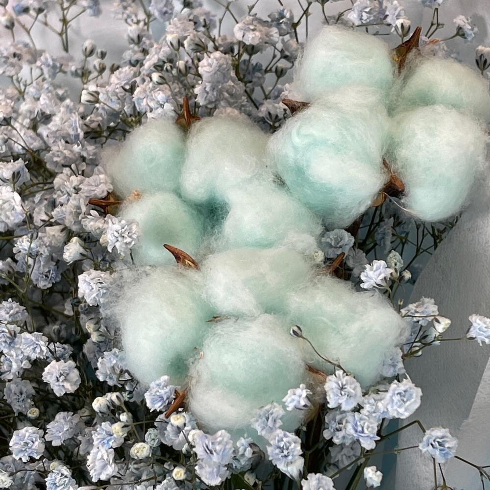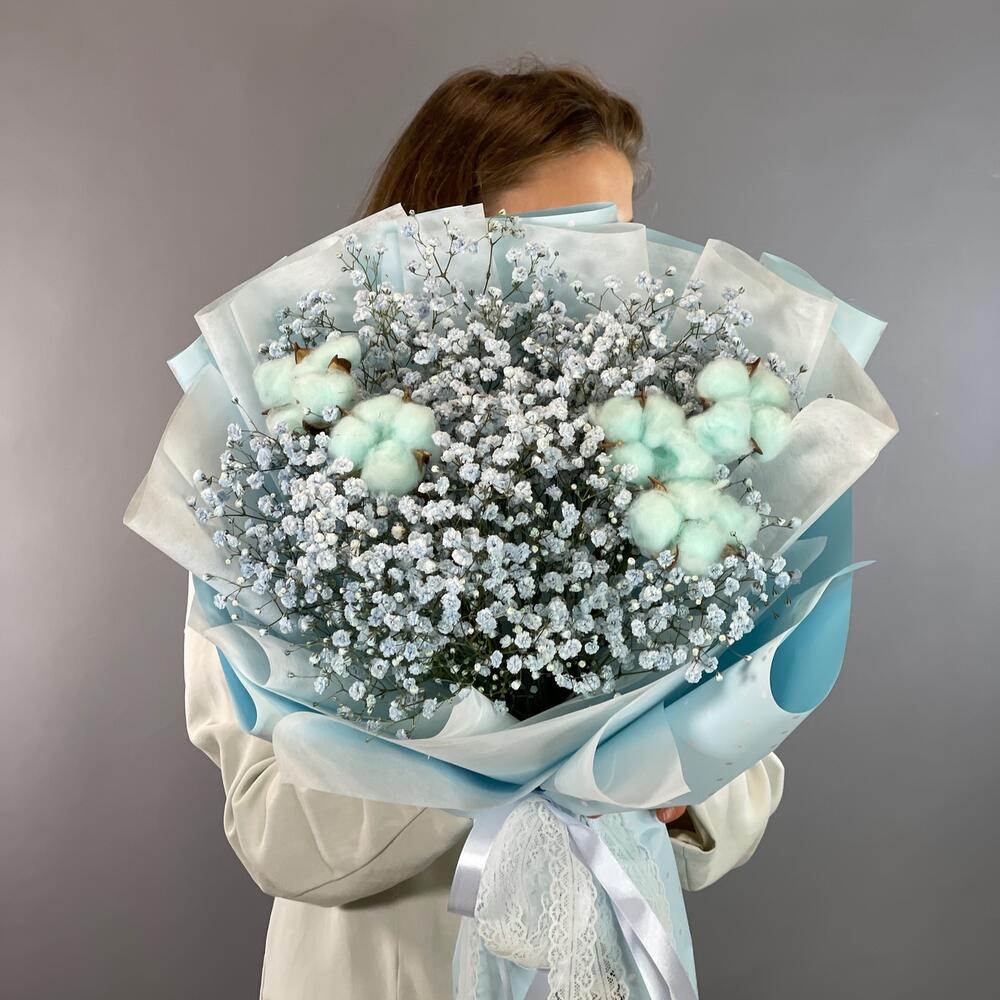 Букет из голубой гипсофилы с хлопком Воздушное облачко