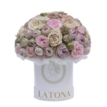 Букет цветов в фиолетовых, розовых и кремовых тонах