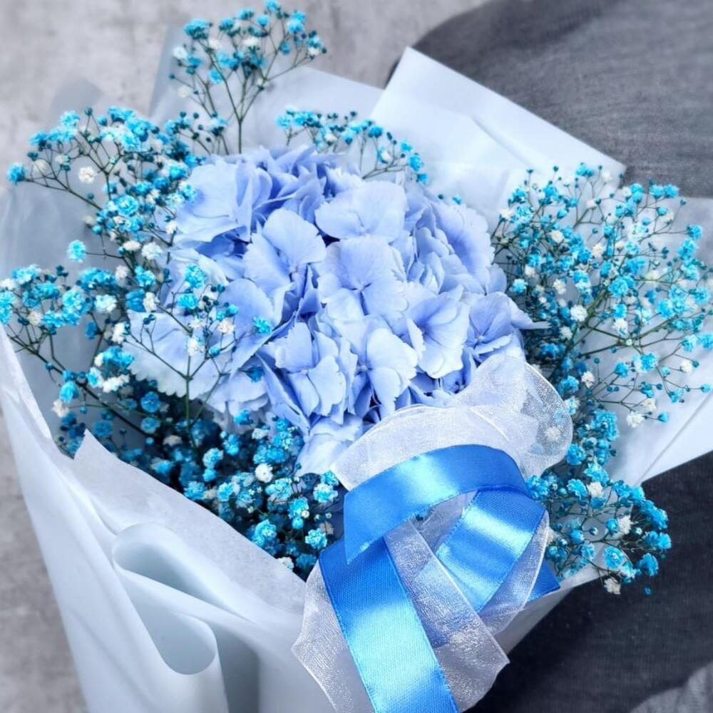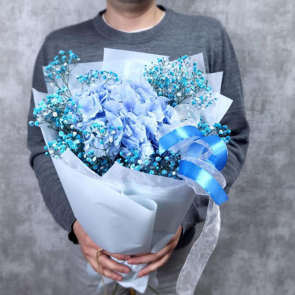 Голубая лагуна S букет из гортезии с гипсофилой