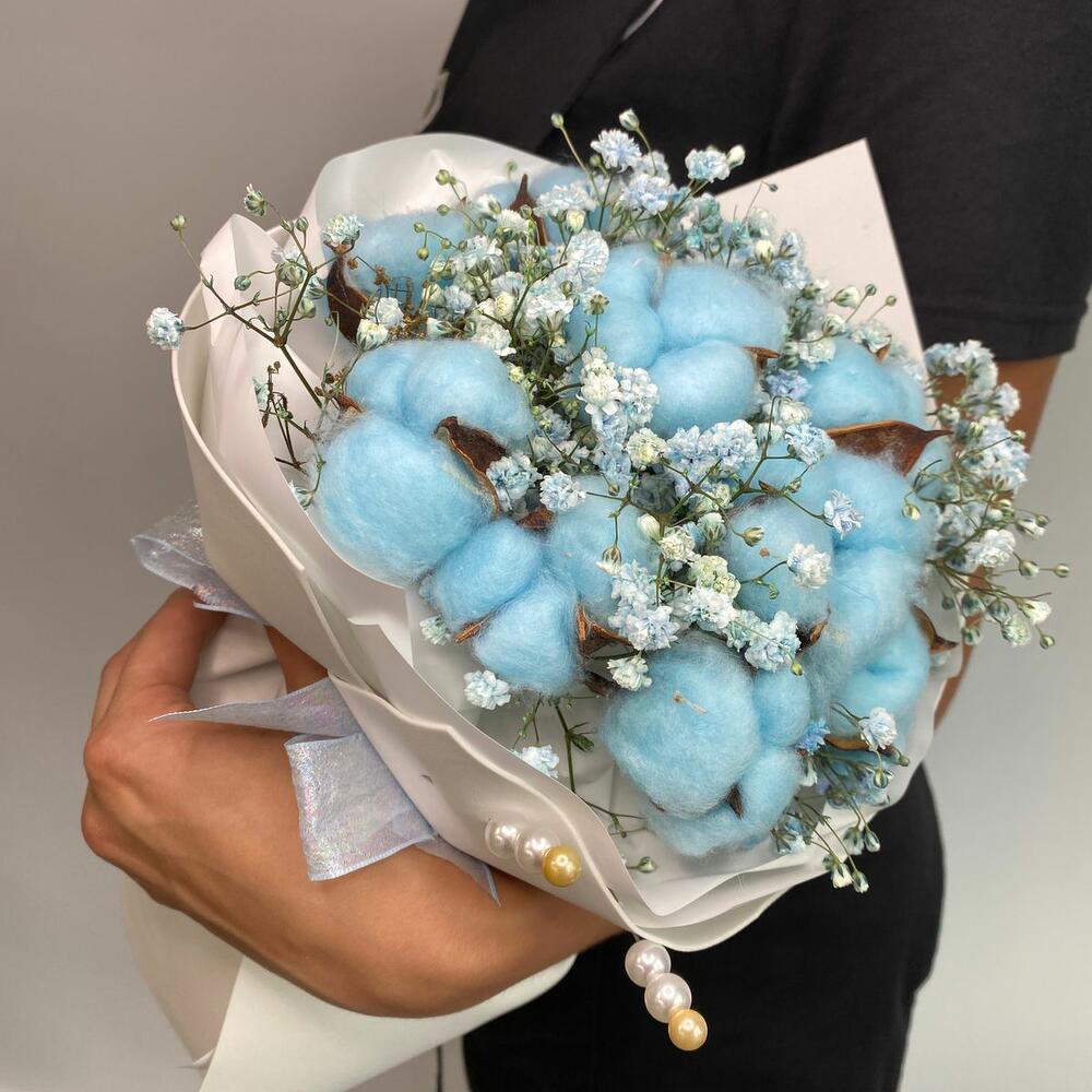 Гипсофила – 2 шт.Хлопок – 9 шт.Упаковка – 3 шт.