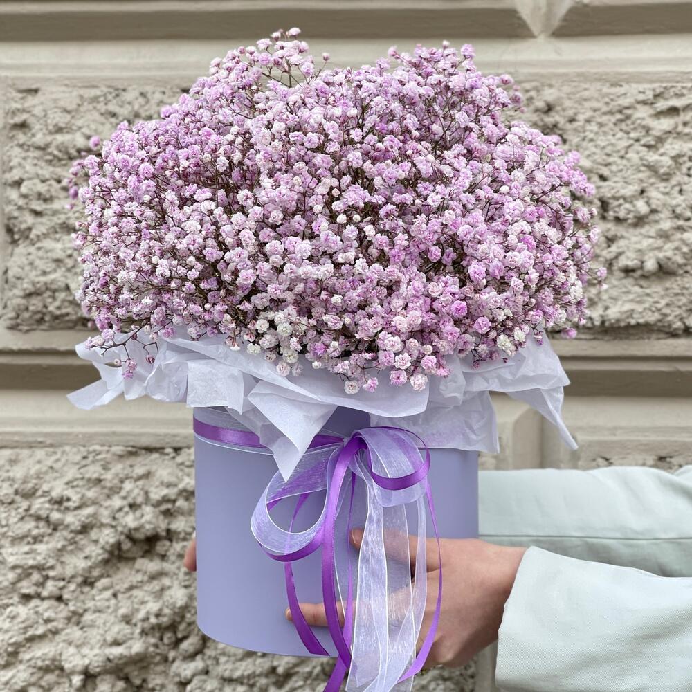 Коробочка с сиреневой гипсофилой Сюрприз