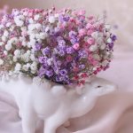 Кашпо керамическое – 1 шт.Флористическая губка (оазис) – 1 шт.радужная гипсофила – 3 шт.