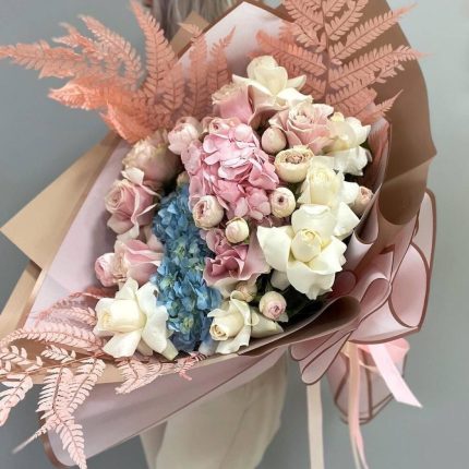 Гортензия – 1 шт. хризантемы кустовые – 4 шт.
