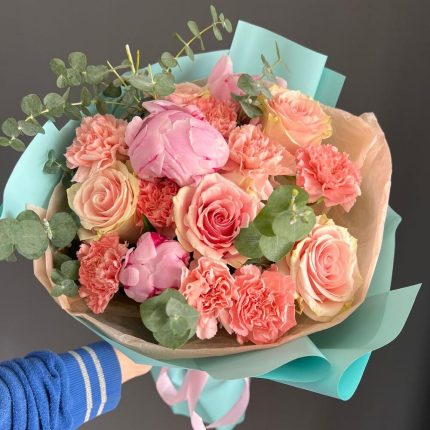 Гвоздики, Гортензии, Лизиантусы, Пионовидные розы, Розы