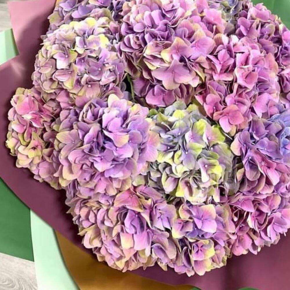Букет из 15 фиолетовых гортензий