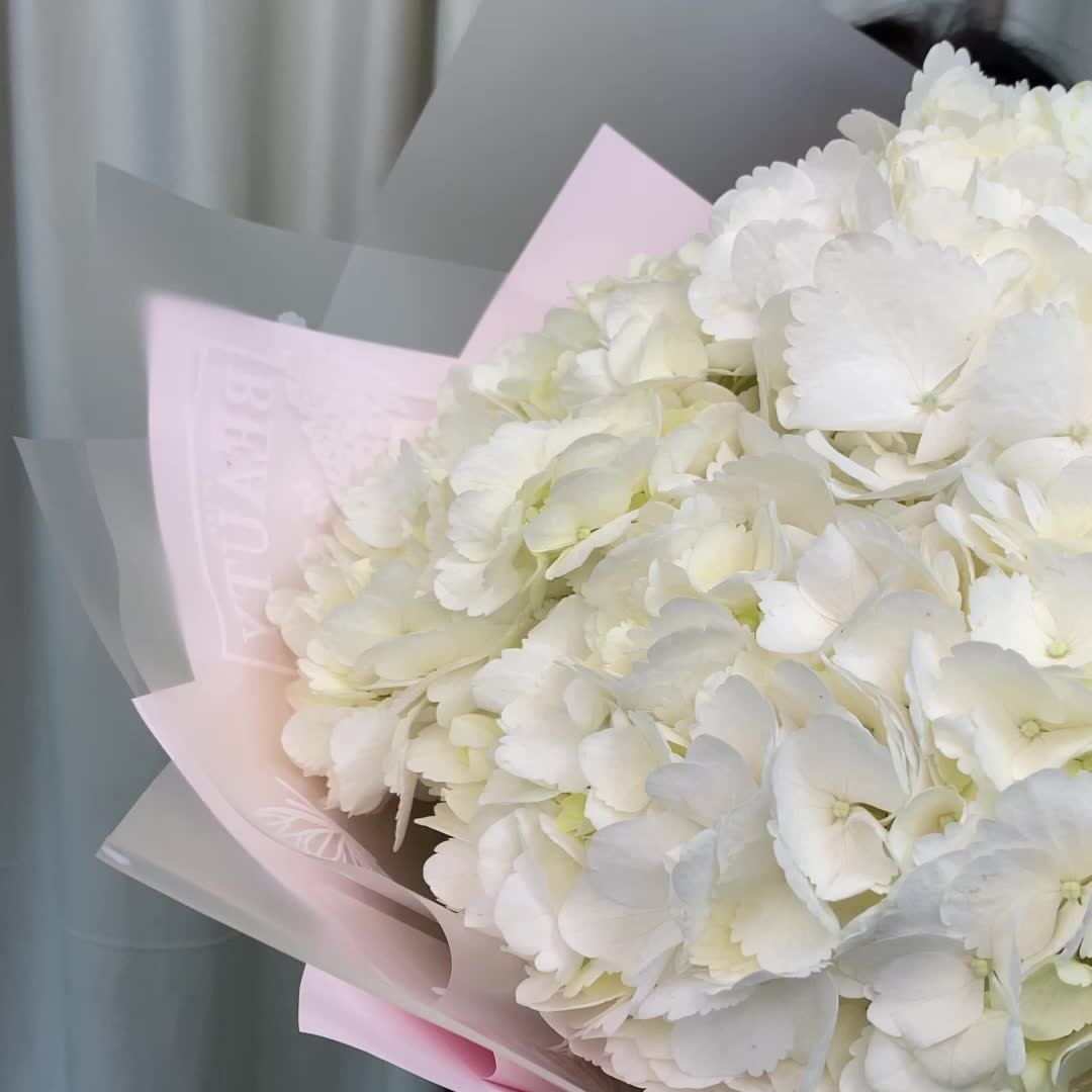 Гортензия – 5 шт.Лента атласная – 3 шт.Аквабокс – 1 шт.Пленка дизайнерская – 5 шт.открытка с вашими пожеланиями – 1 шт.