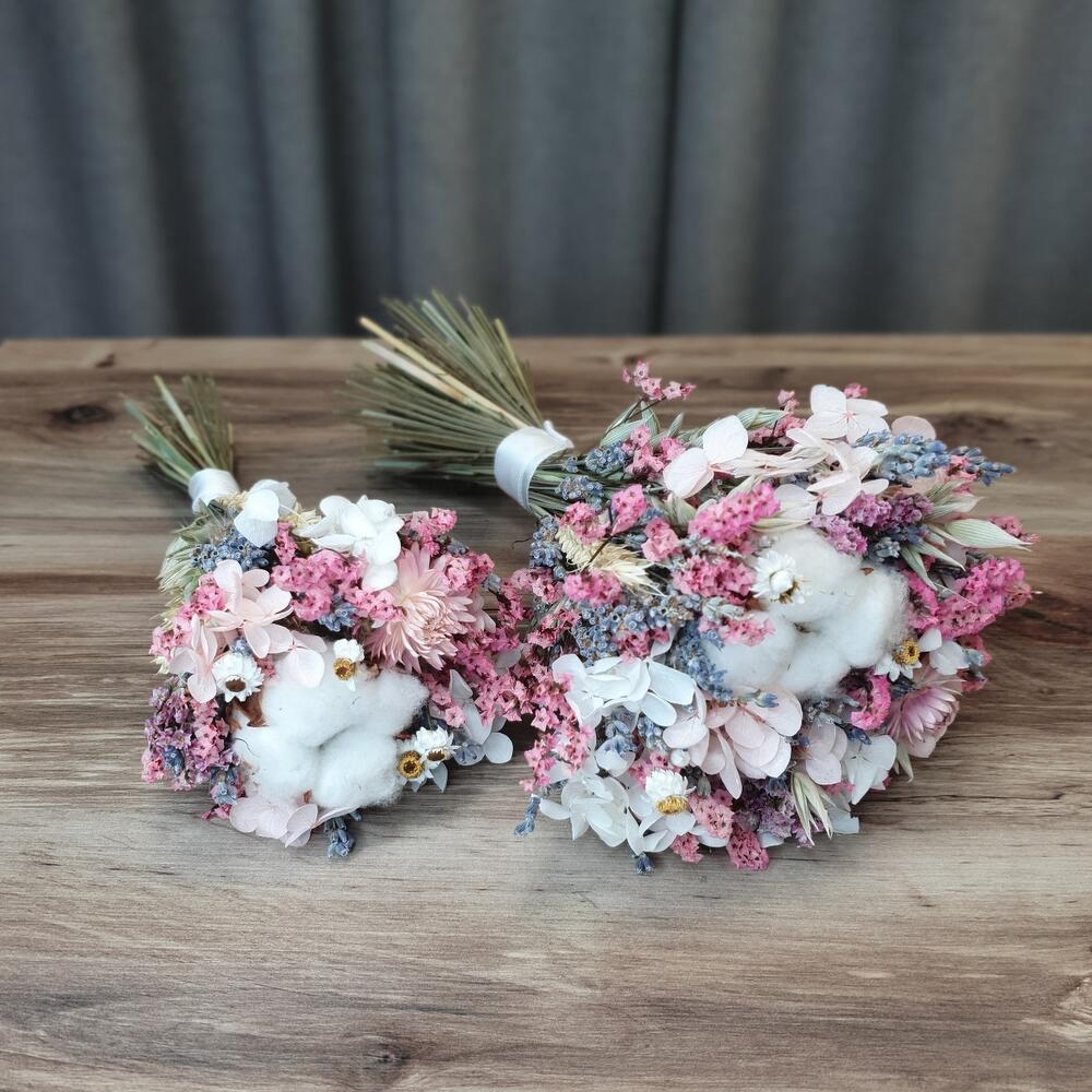 Хлопок – 2 шт.лавандер пучок – 2 шт.стабилизированная гортензия пучок – 2 шт.стабилизированный лимониум пучок – 2 шт.овес пучок – 2 шт.колоски пучок – 2 шт.амобиум пучок – 2 шт.Лента атласная – 2 шт.