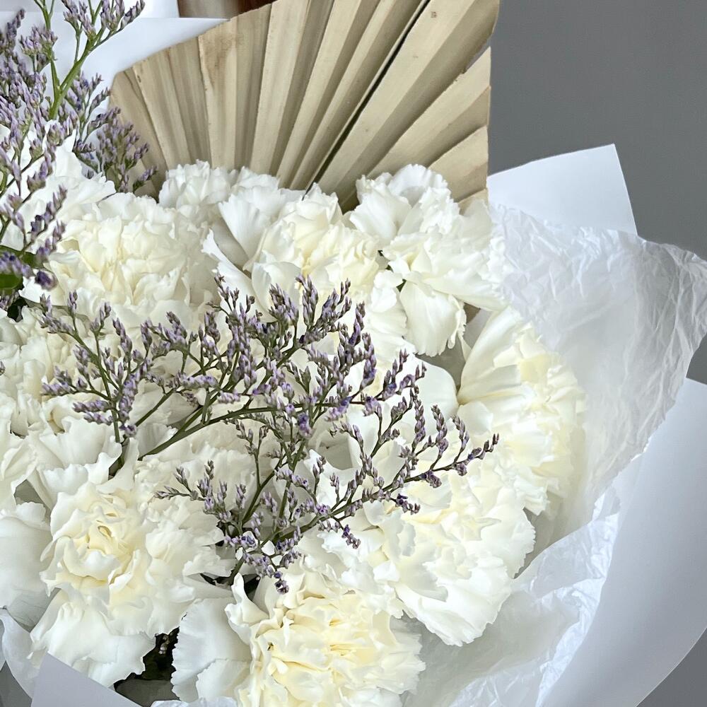 Гвоздика – 15 шт.Лимониум – 1 шт.пальма пика – 1 шт.