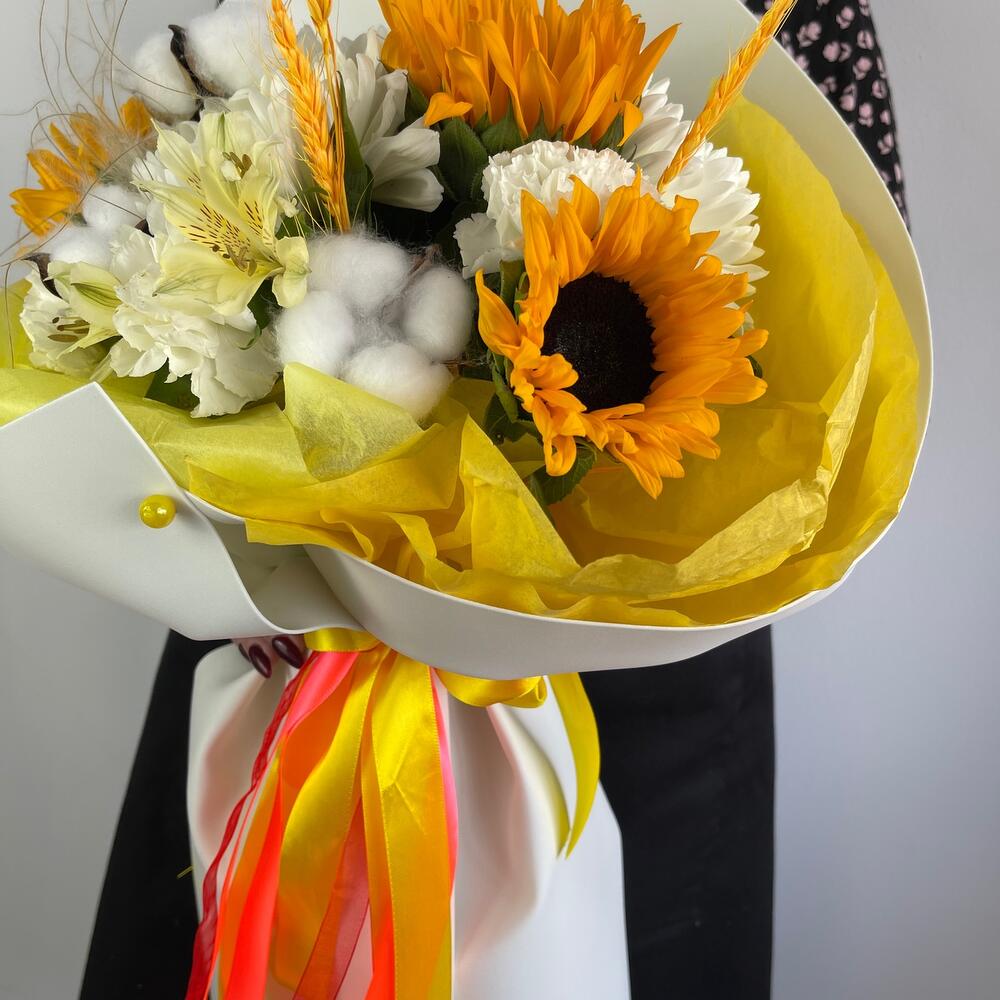 Категории: Альстромерии, Гвоздики, Подсолнухи, Сухоцвет
