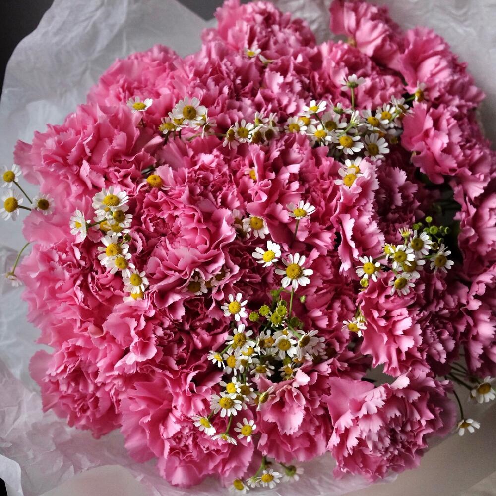 Букет из 25 диантусов и ромашки