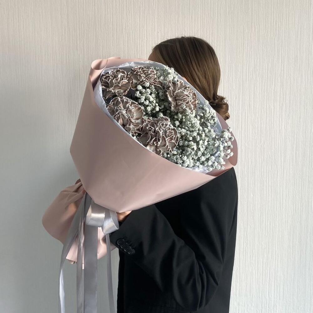 Букет из гипсофилы и диантусов