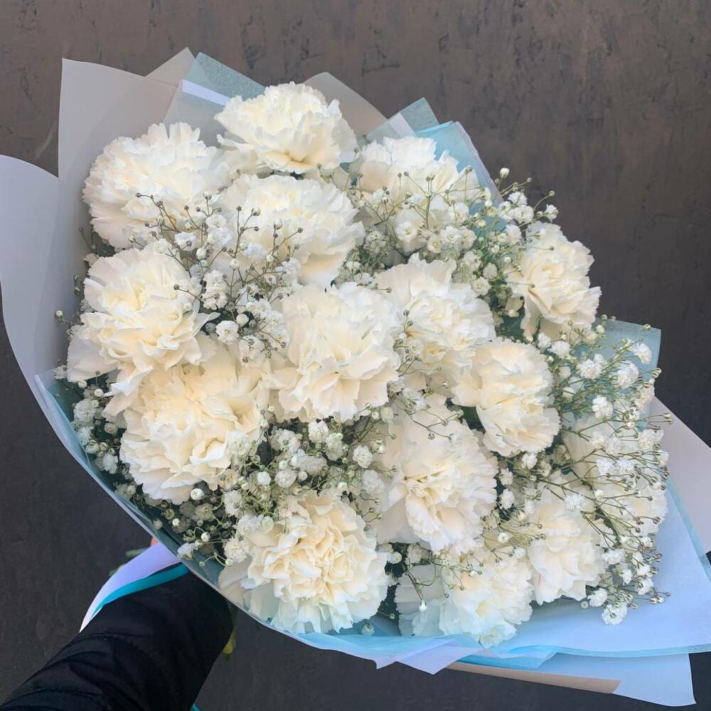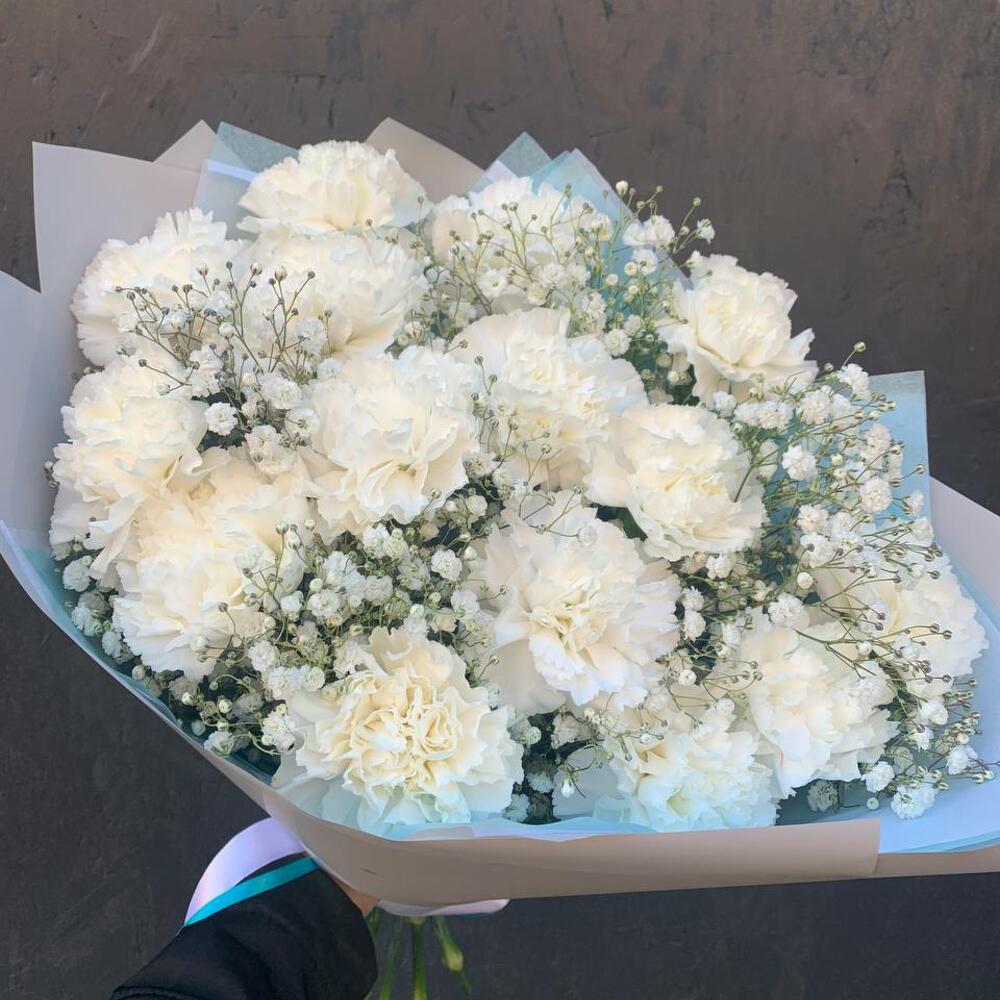 Букет из гвоздик с гипсофилой Белоснежное облако