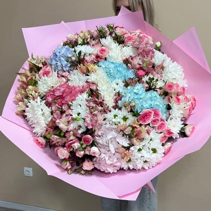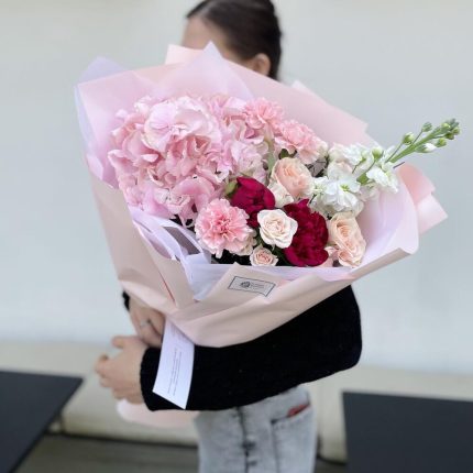 Букет с королевской гортензией и пионами