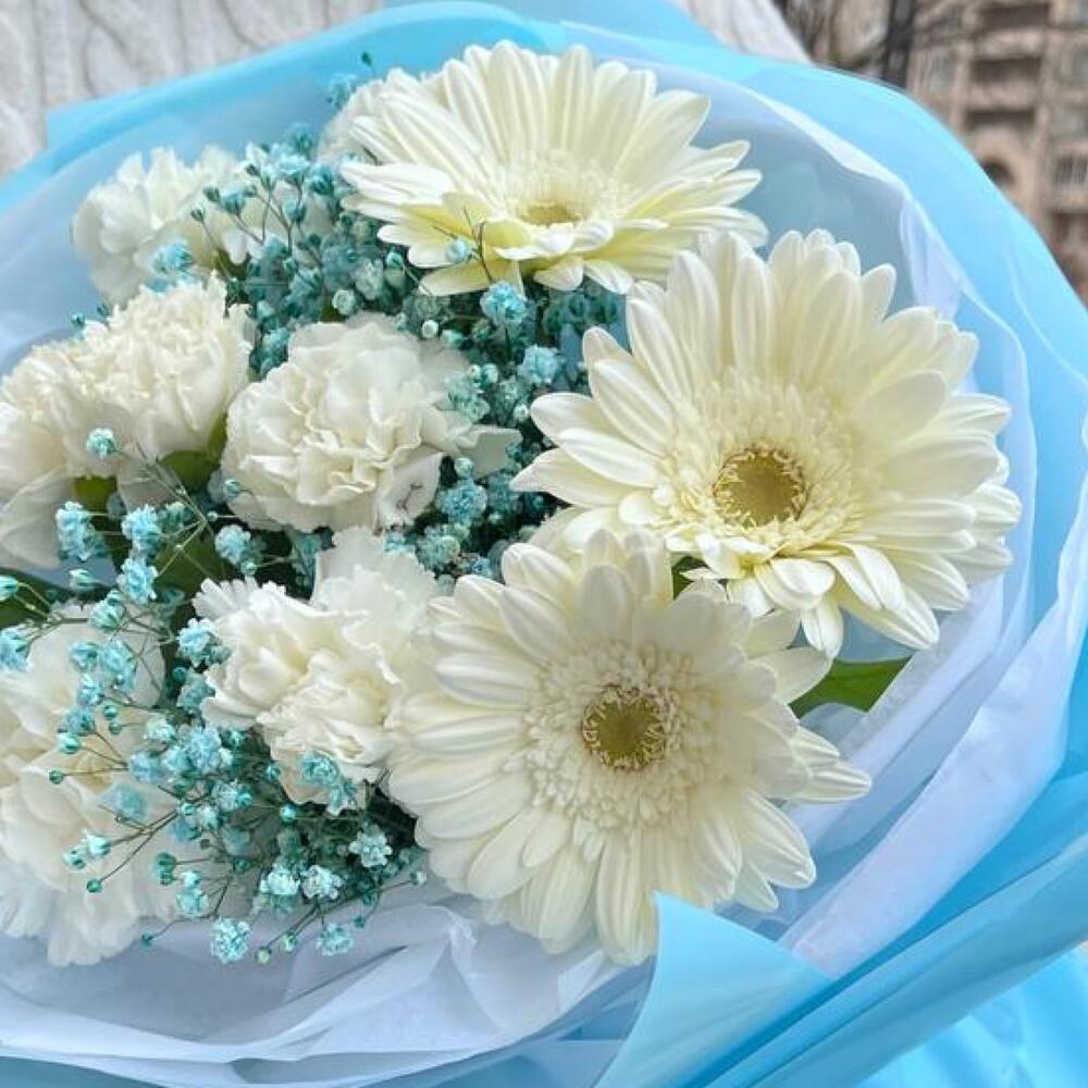 Категории: Гвоздики, Герберы, Гипсофила