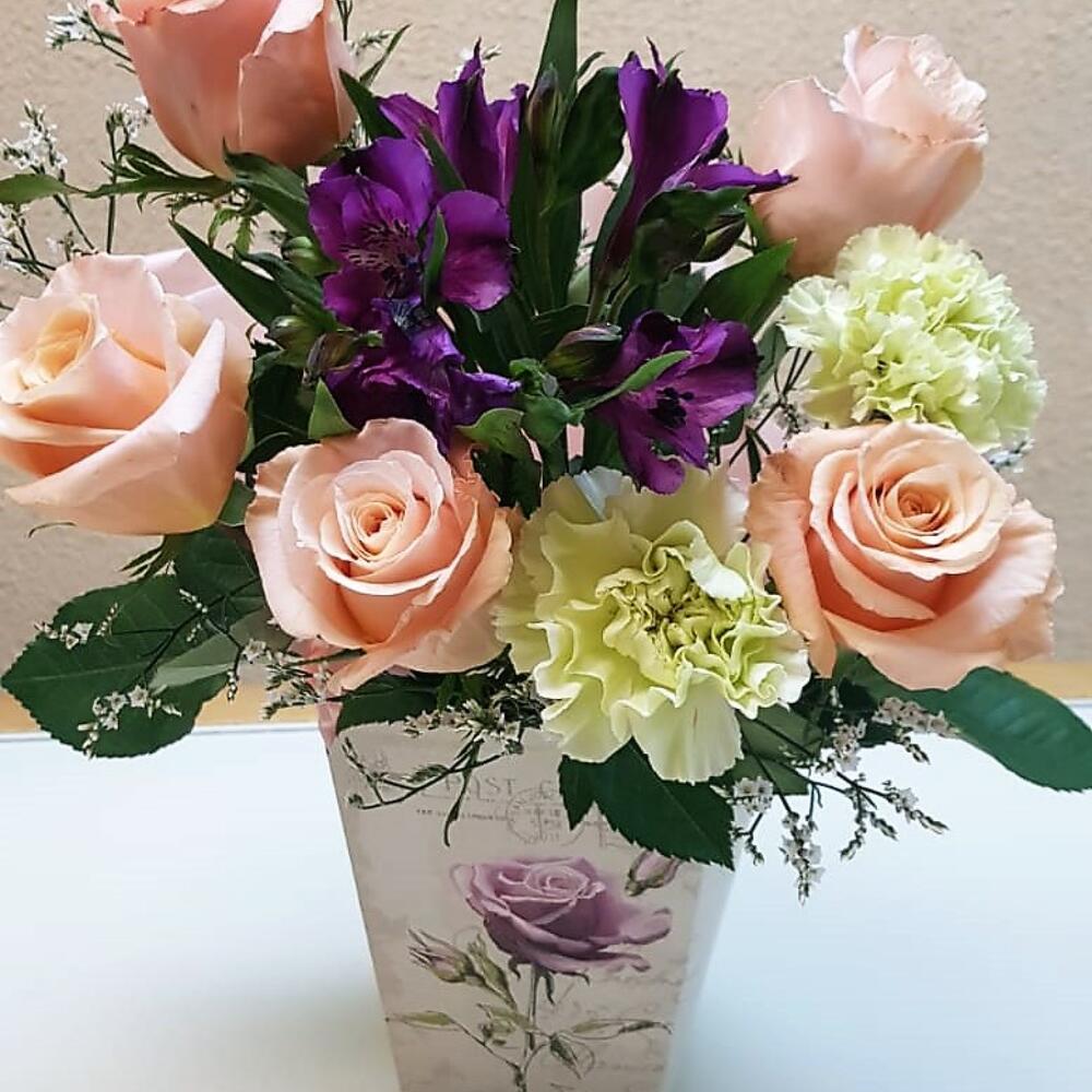 Композиция из роз и альстрамерии