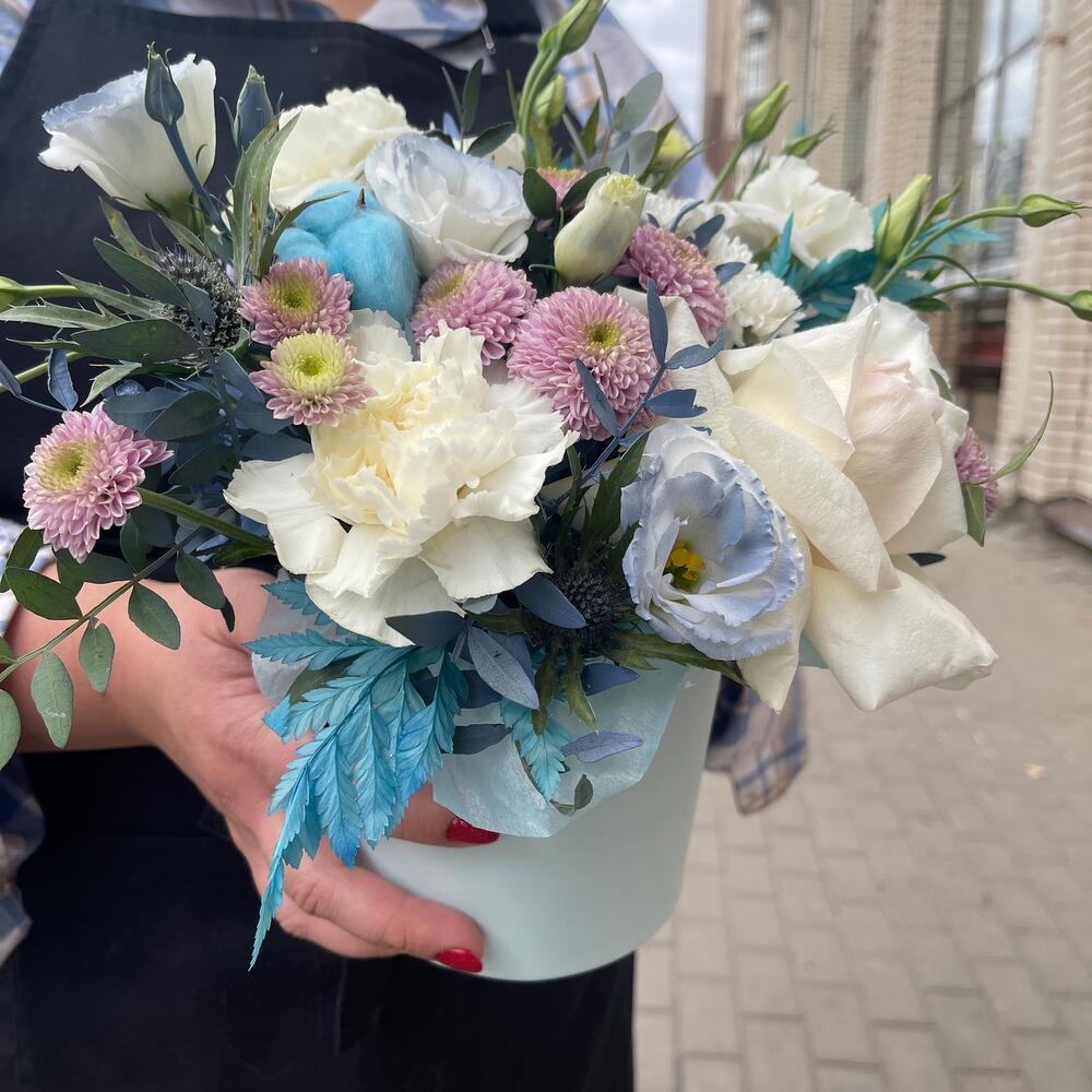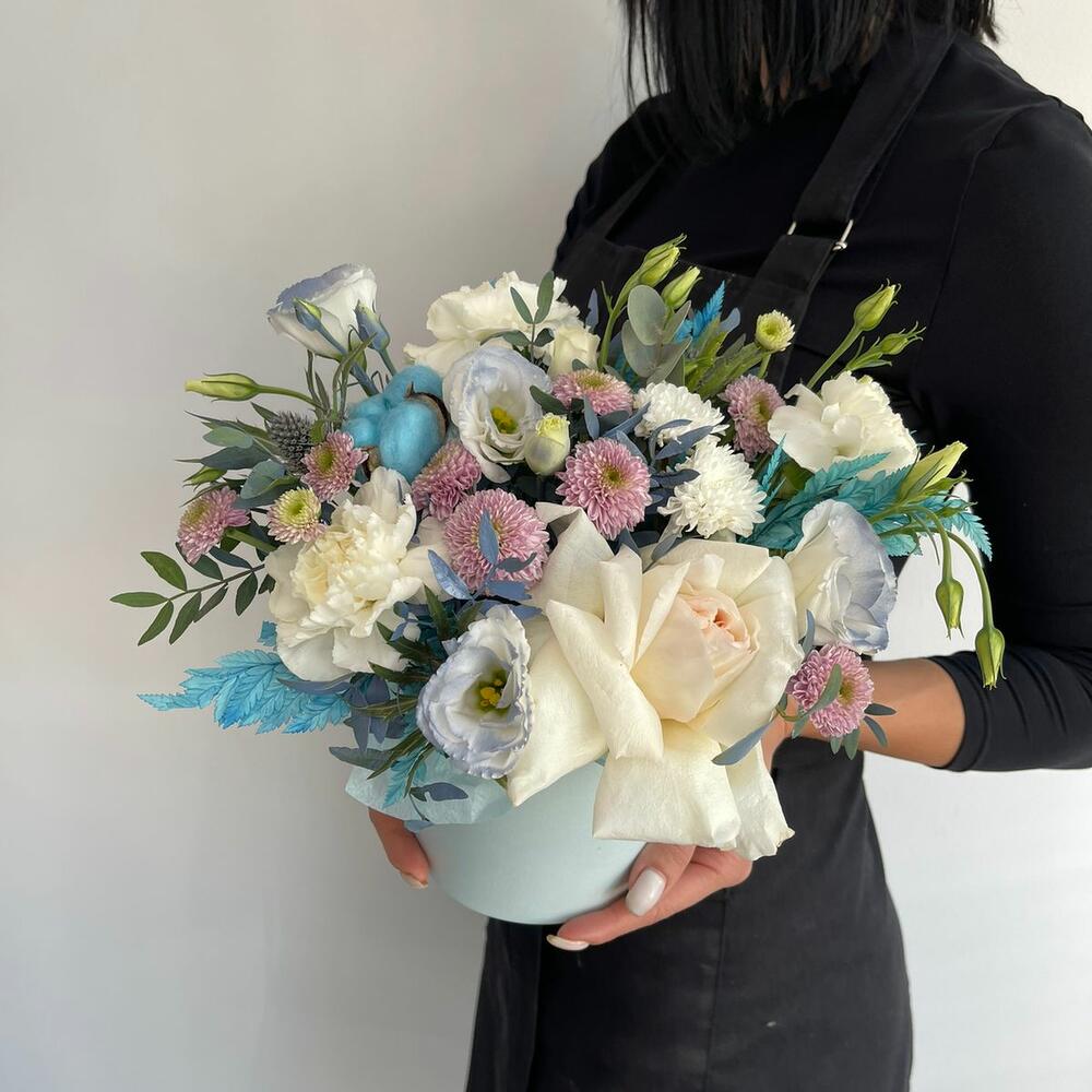 Коробочка с цветами в голубых оттенках