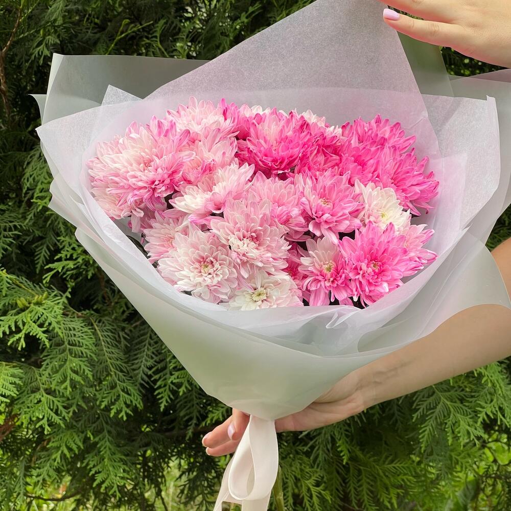 Хризантема крашеная – 5 шт.Пленка матовая – 1 шт.Тишью белое – 1 шт.