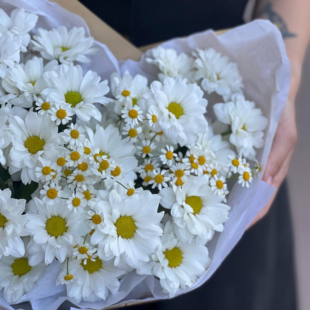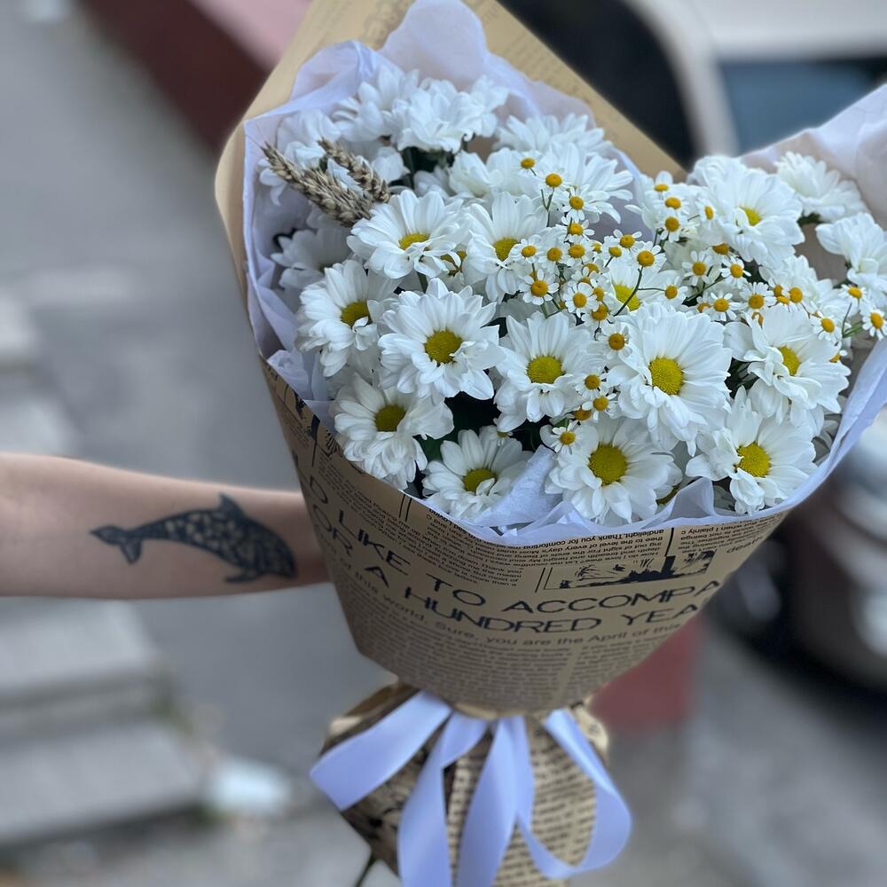 Букет из кустовых хризантем и ромашек