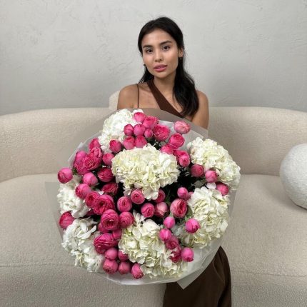 “Эвкалиптическая роскошь” гортензия и пионовидная кустовая роза