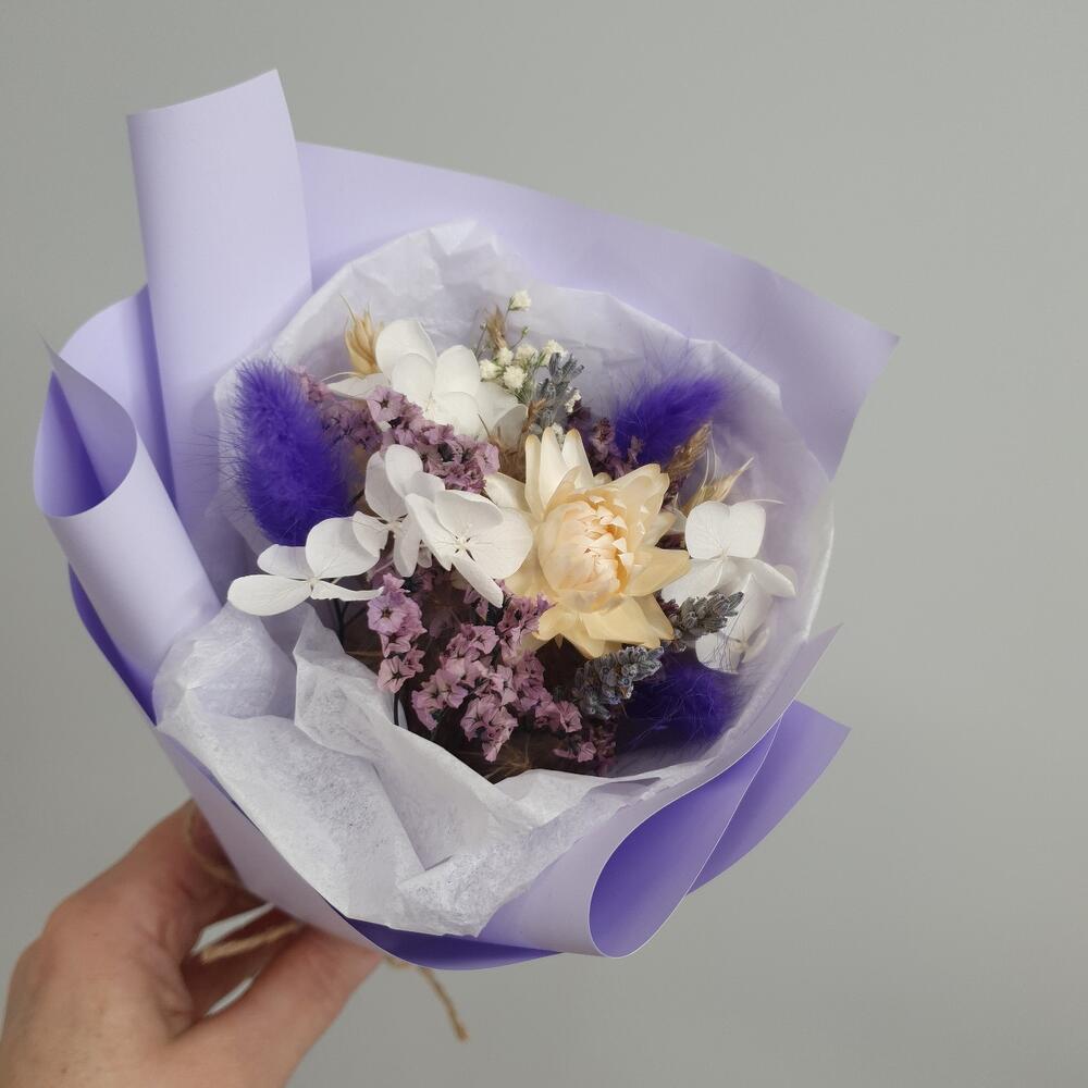 лаванда стабилизированная пучок – 1 шт.гелихризум (сухоцвет) – 1 шт.лаванда пучок (сухоцвет) – 1 шт.статица стабилизированная – 2 шт.Упаковка дизайнерская – 2 шт.Лагурус (сухоцвет) – 3 шт.камыш декоративный пучок – 1 шт.