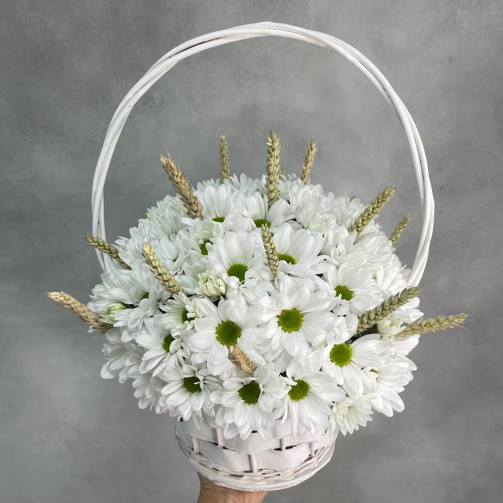 Корзина – 1 шт.Оазис – 2 шт.Пшеница – 20 шт.Хризантема Бакарди – 9 шт.