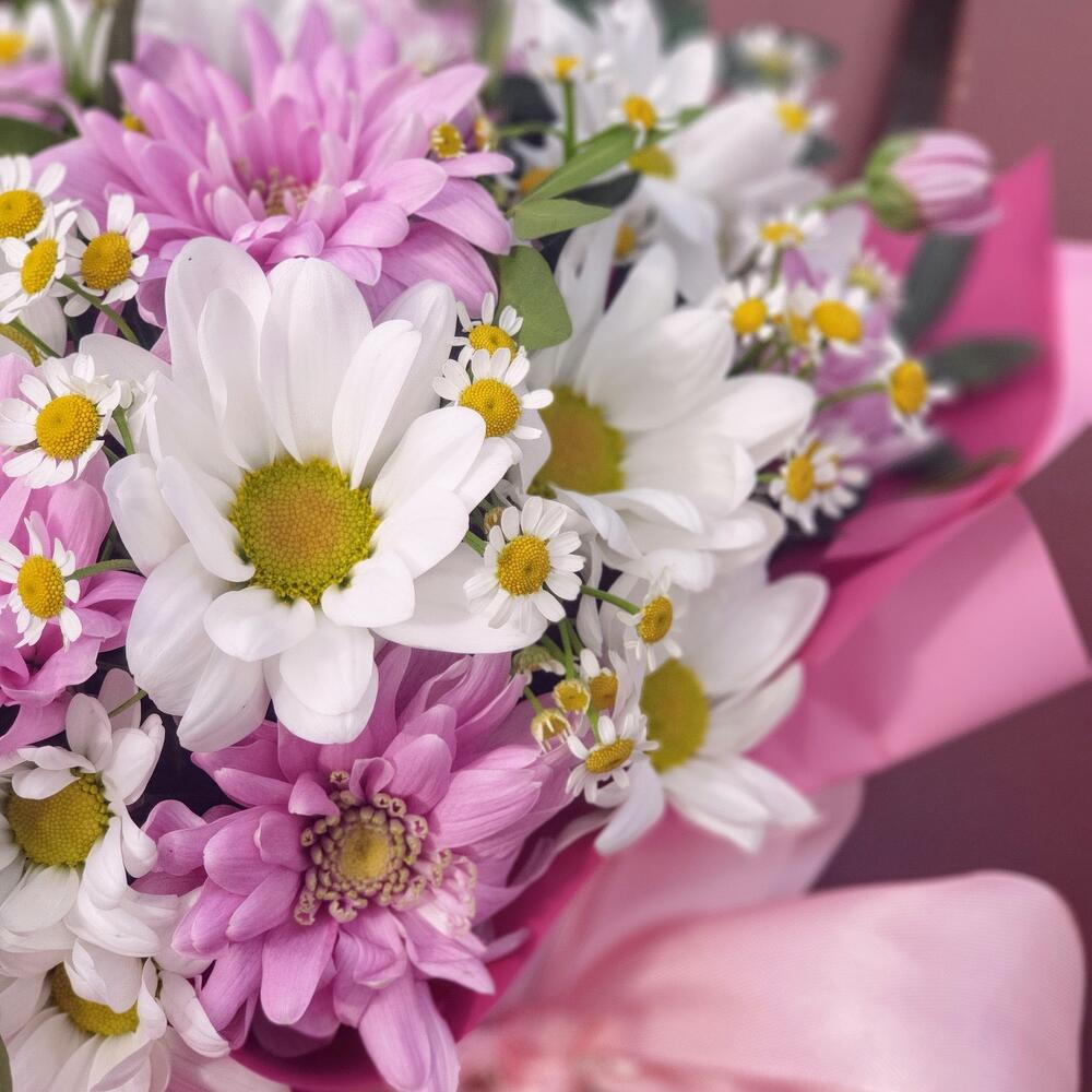 Букет кустовых роз и ромашки