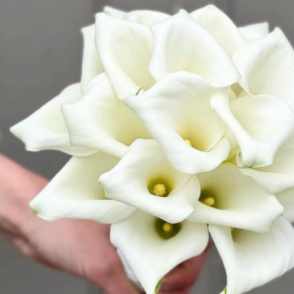 Калла белая – 19 шт.Лента атласная – 2 шт.Открыточка с вашими пожеланиями – 1 шт.хорошее настроение – 100 шт.инструкция по уходу за цветами – 1 шт.коробка переноска – 1 шт.Кризал – 1 шт.