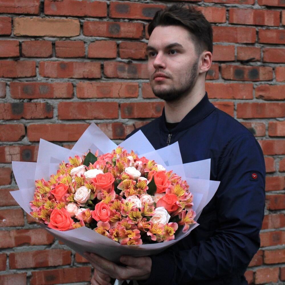 Букет микс из альстромерии и роз