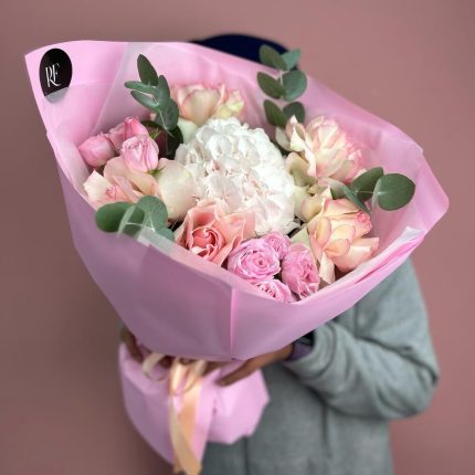 Шикарный букет из гортензий и кустовых роз