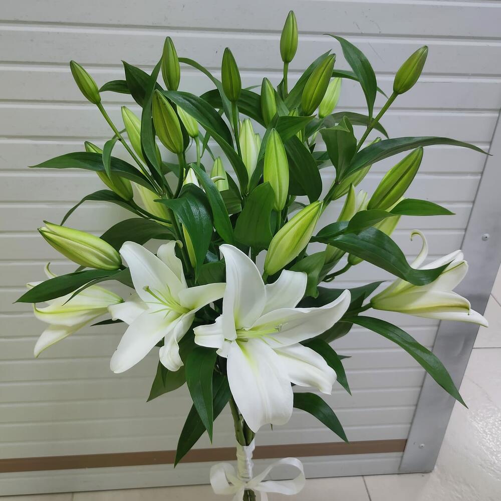 Лилия ориентальная – 5 шт.Лента атласная – 1 шт.