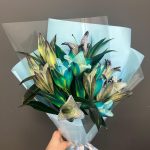 Лента атласная – 2 шт.Упаковка корейская пленка – 2 шт.лилия крашенная – 9 шт.