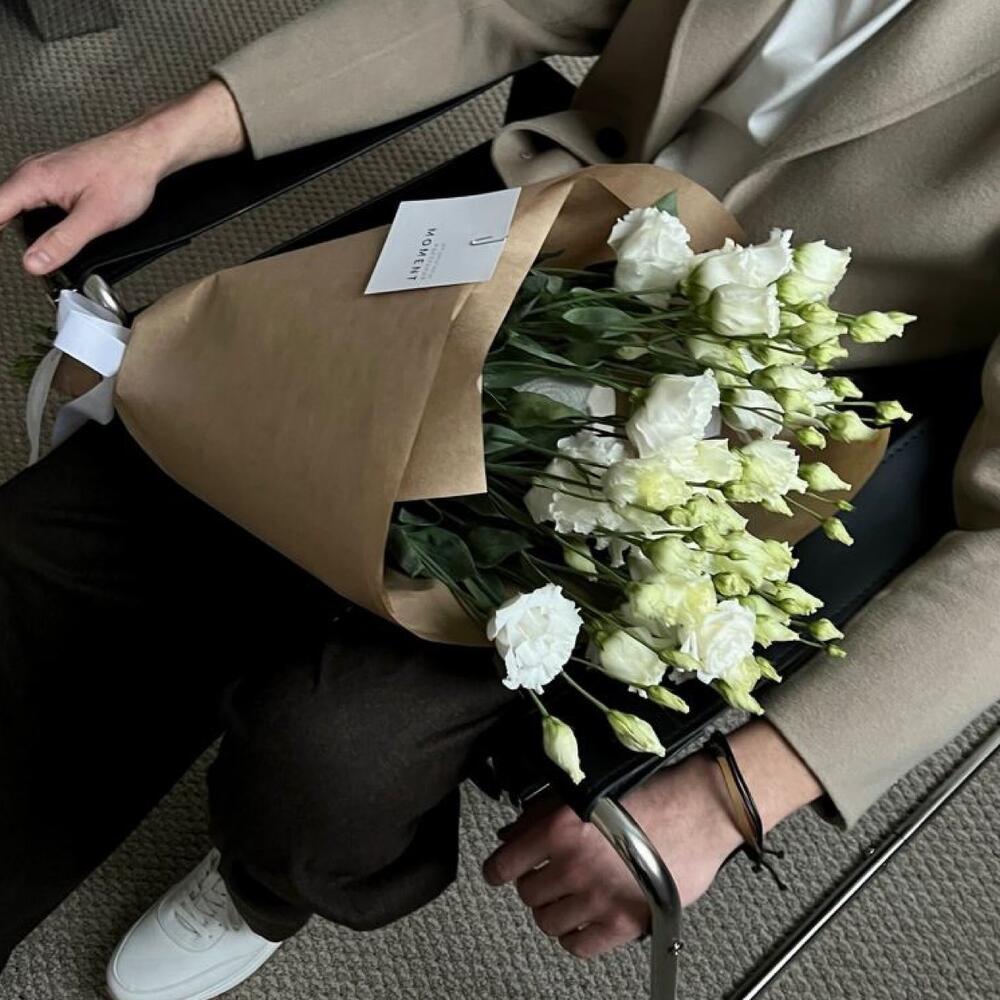 Большой букет белых лизиантусов