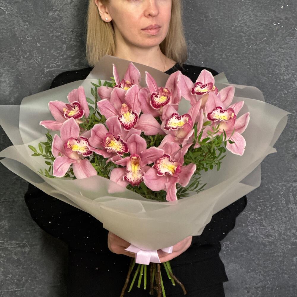 орхидея – 11 шт.Писташ – 5 шт.Стильная упаковка – 1 шт.Лента атласная – 1 шт.