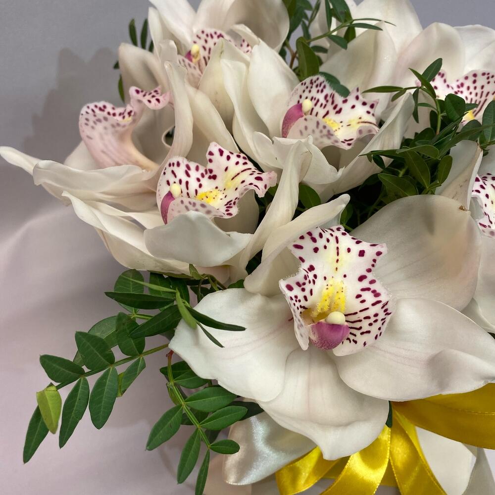 Орхидея Цимбидиум – 9 шт.Фисташка пучок – 1 шт.Коробка шляпная – 1 шт.
