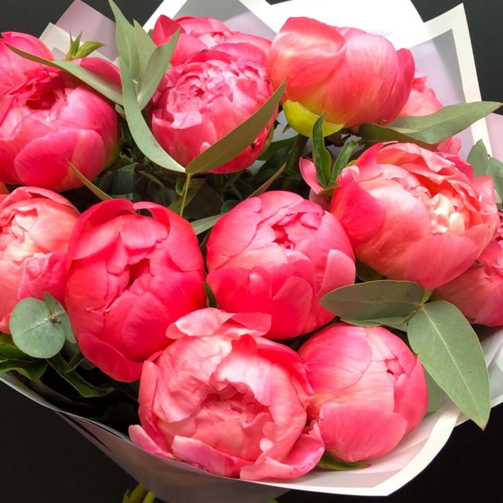 15 пионов с эвкалиптом